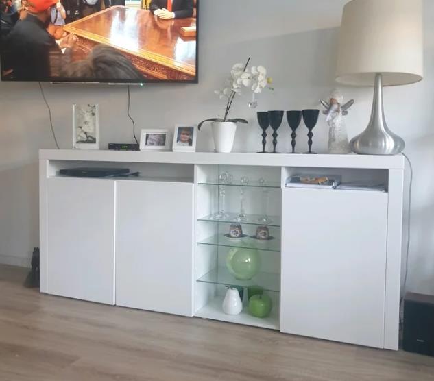 Открытая ниша со стеклянными полками: Идеальное место для демонстрации ваших любимых предметов декора, фотоальбомов или коллекционных фигурок. Стеклянные полки добавляют комоду легкости и воздушности. Вы сможете наслаждаться красотой своих вещей, не открывая дверцы.