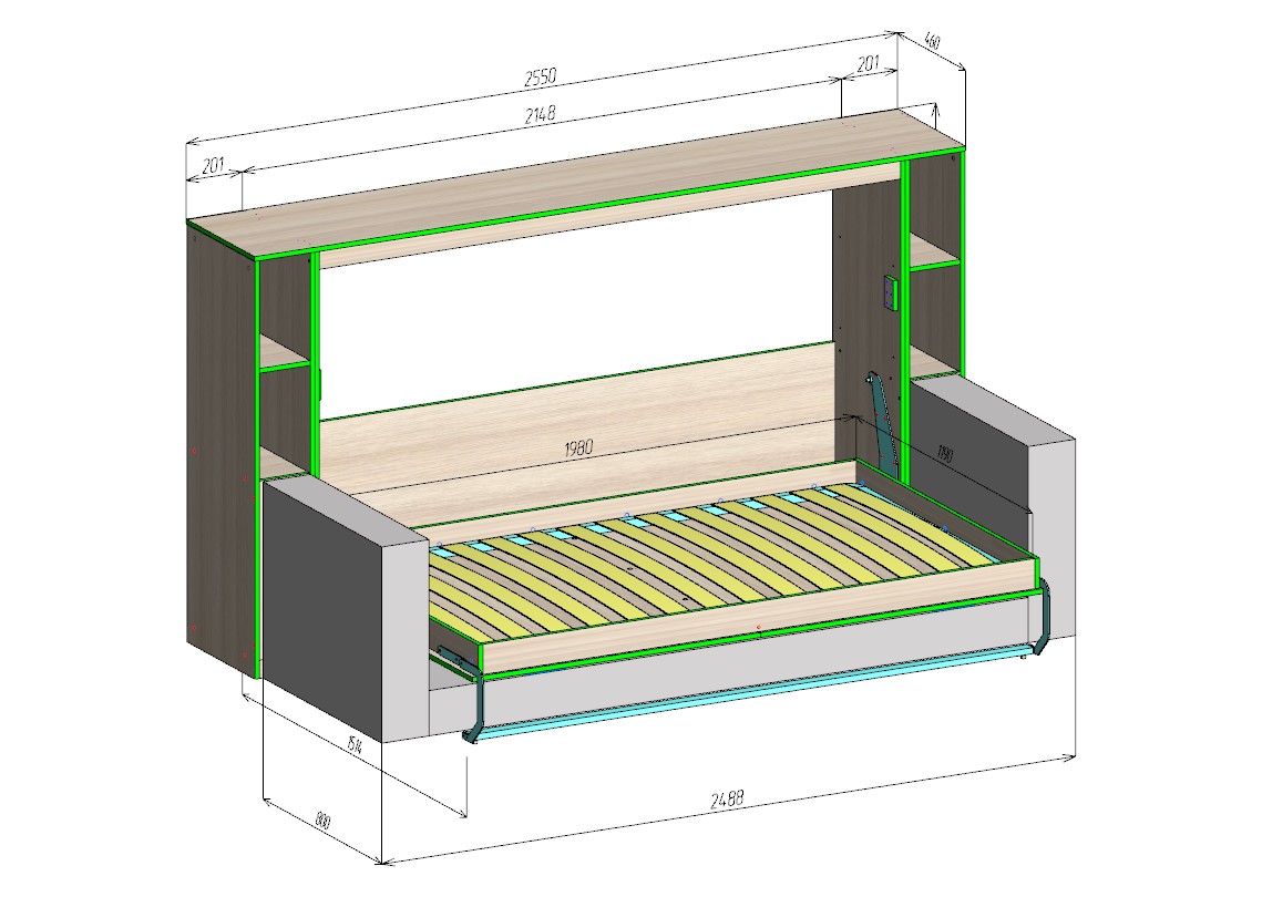 Благодаря вертикальному откидному механизму трансформация из дивана в полноценную кровать занимает минимум времени и не требует усилий. Надёжная конструкция рассчитана на ежедневное использование и обеспечивает длительный срок службы.