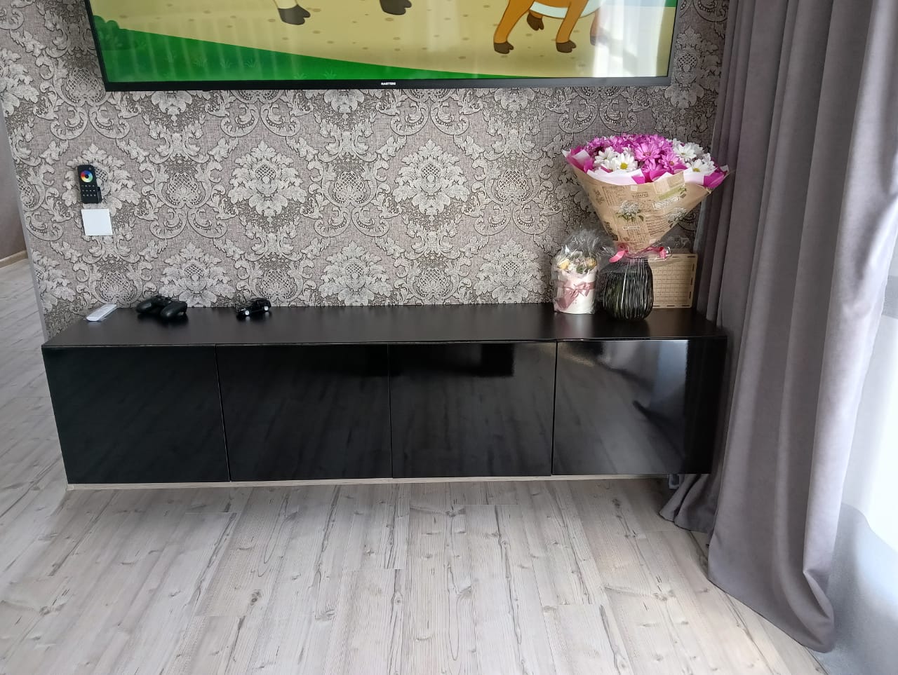 Это элегантное хранилище для вашей техники и аксессуаров, идеально вписывающееся в любой интерьер. Четыре распашные дверцы, открывающиеся одним лёгким нажатием – никаких ручек, только плавное и бесшумное скольжение. За каждой дверцей вас ждёт вместительная полка, идеальная для хранения игровых приставок, DVD-дисков, пульта управления или других мелочей.